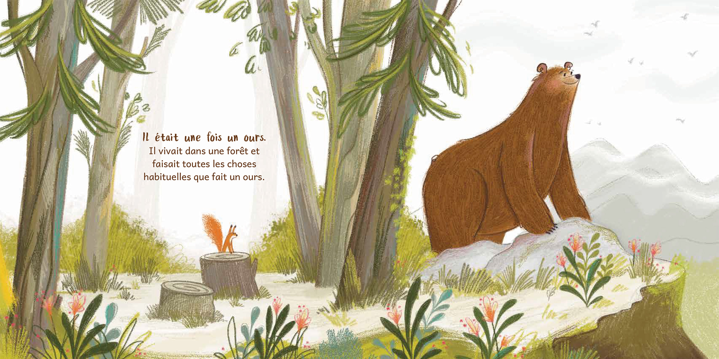 Il était une fois un ours qui vivait dans une forêt et faisait toutes les choses habituelles des ours. Mais au fur et à mesure que sa maison et le monde qui l'entoure changent - moins de poissons, moins d'arbres et moins de calme - il remarque à quel point sa vie devient difficile à maintenir. La chose la plus raisonnable à faire est de s'adapter. L'ours demande donc l'aide d'une petite fille et lui demande de lui apprendre à être humain.