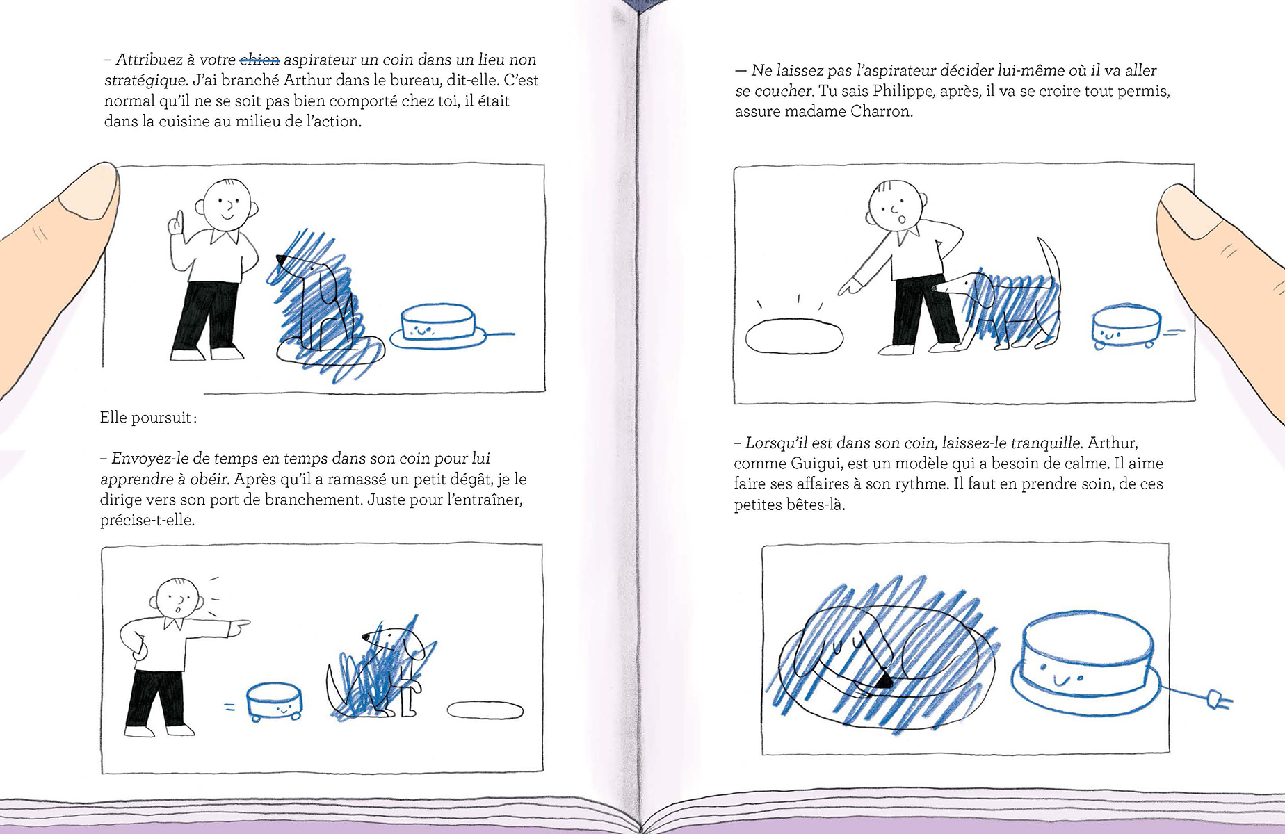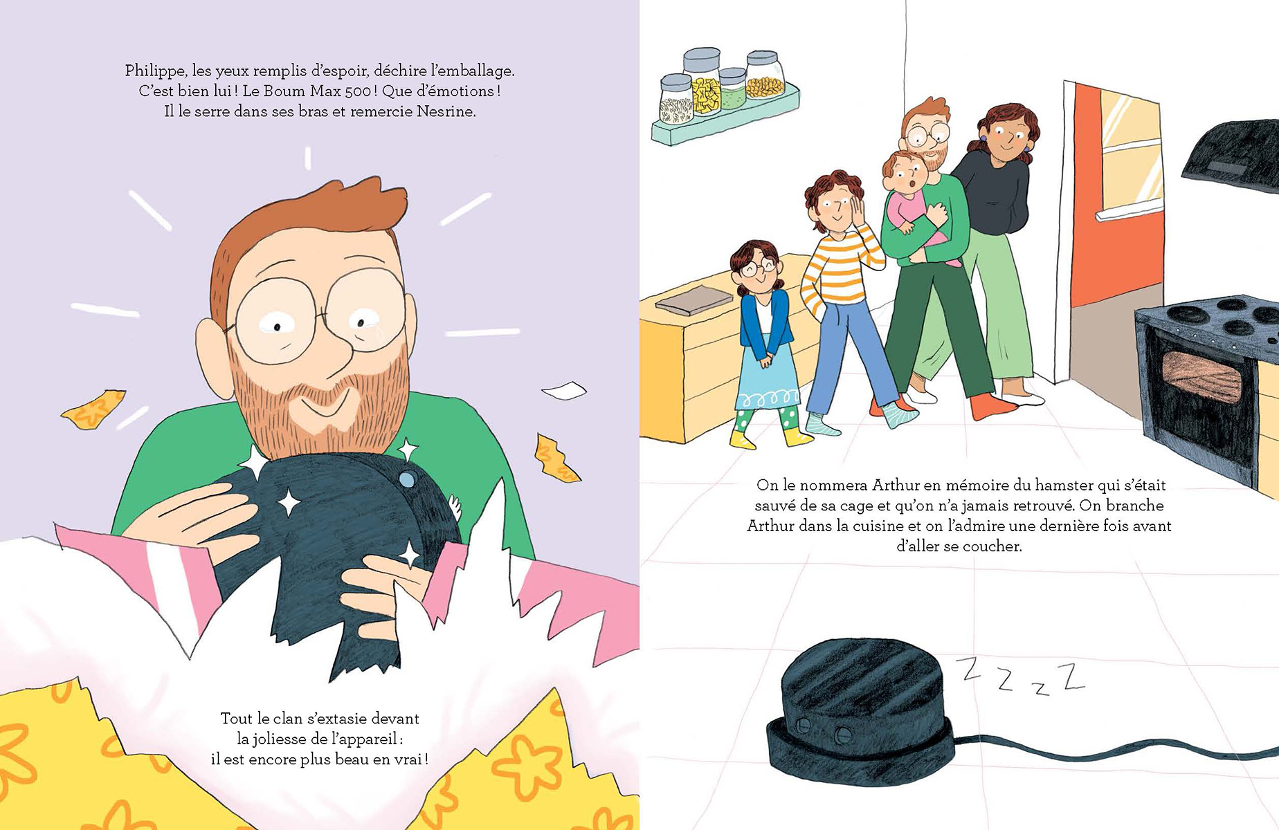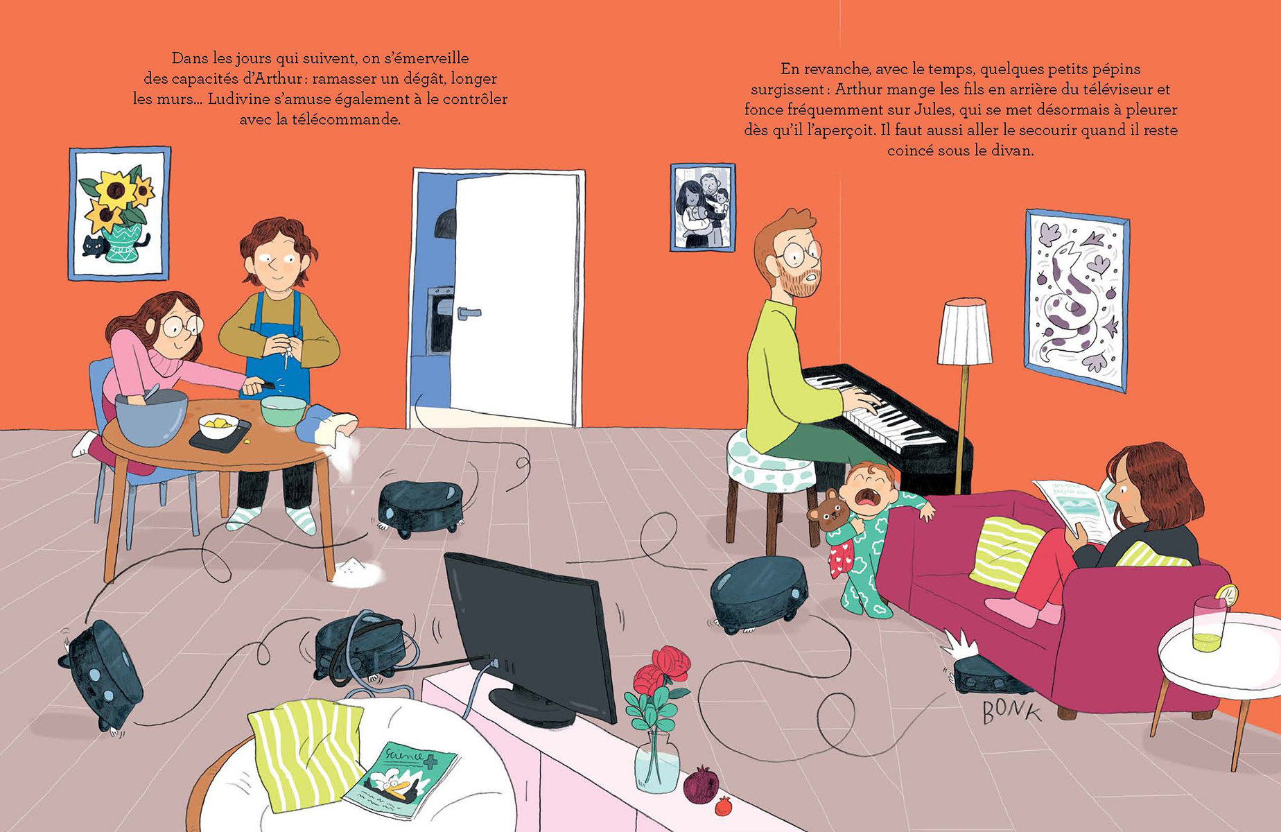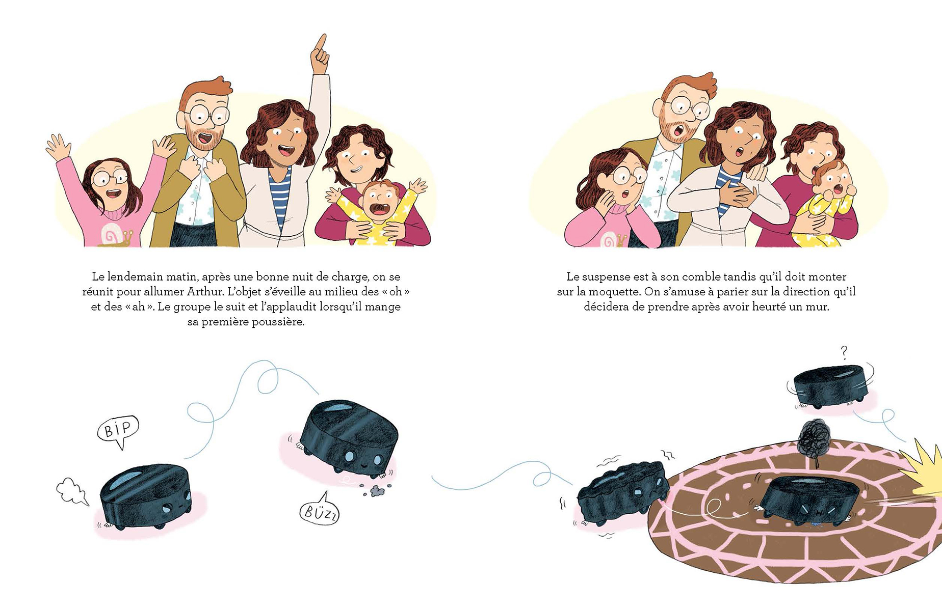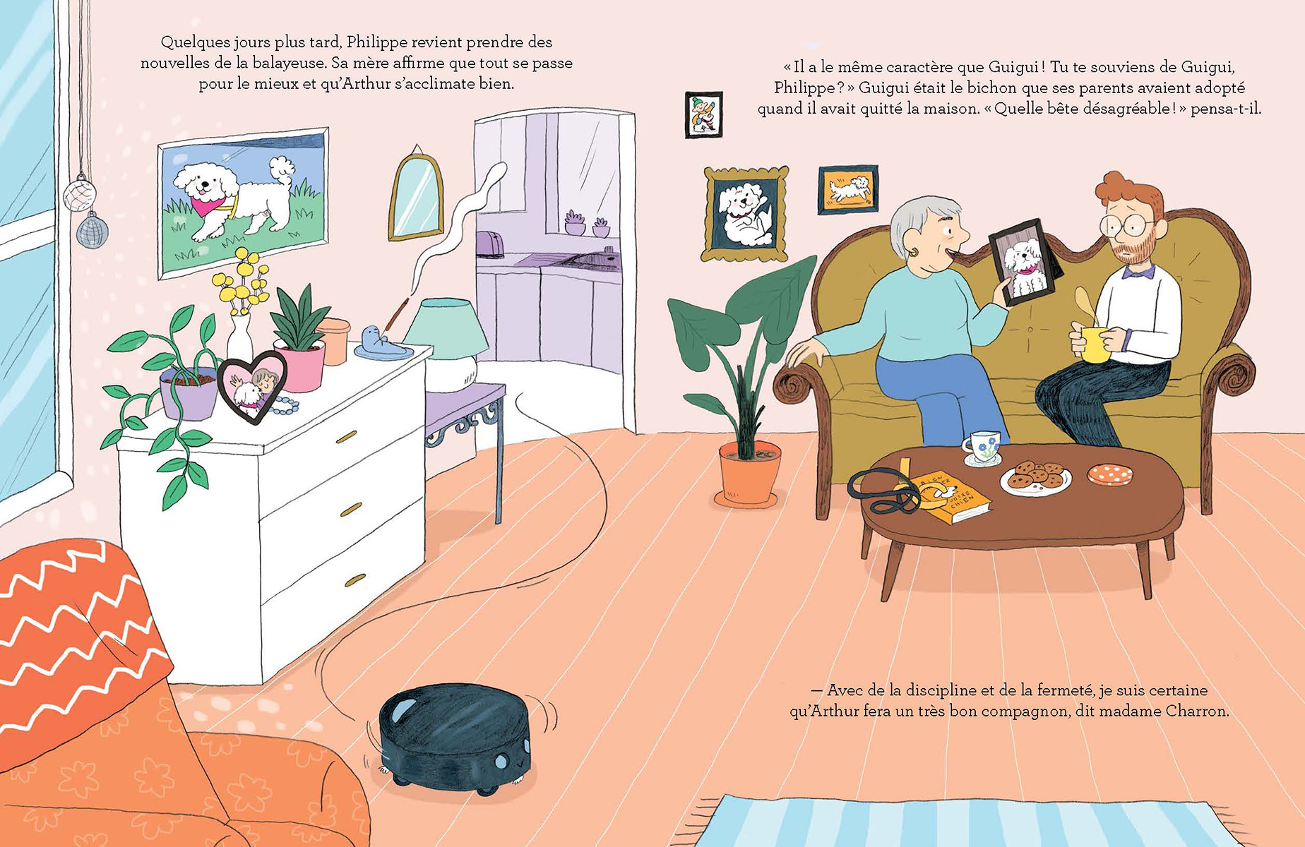 Quand Philippe aperçoit le super Boom Max 500 dans la vitrine du quincaillier, c’est le coup de foudre. Il est convaincu que sa famille et lui ont absolument besoin de ce fameux robot aspirateur intelligent. C’est donc avec beaucoup d’excitation et de plaisir que, quelques jours plus tard, il ouvre son cadeau d’anniversaire et découvre Arthur ! Parce que, oui, le super aspirateur robot se nommera Arthur. Les jours passent et, si au début c’est la lune de miel, rapidement les petits défauts d’Arthur prennent le dessus et tous commencent à être un peu exaspérés de partager leur quotidien avec le robot. C’est à ce moment-là que Philippe a l’idée de génie de l’offrir à grand-mère. Sceptique au départ, celle-ci trouvera une façon bien à elle de gérer la bête !