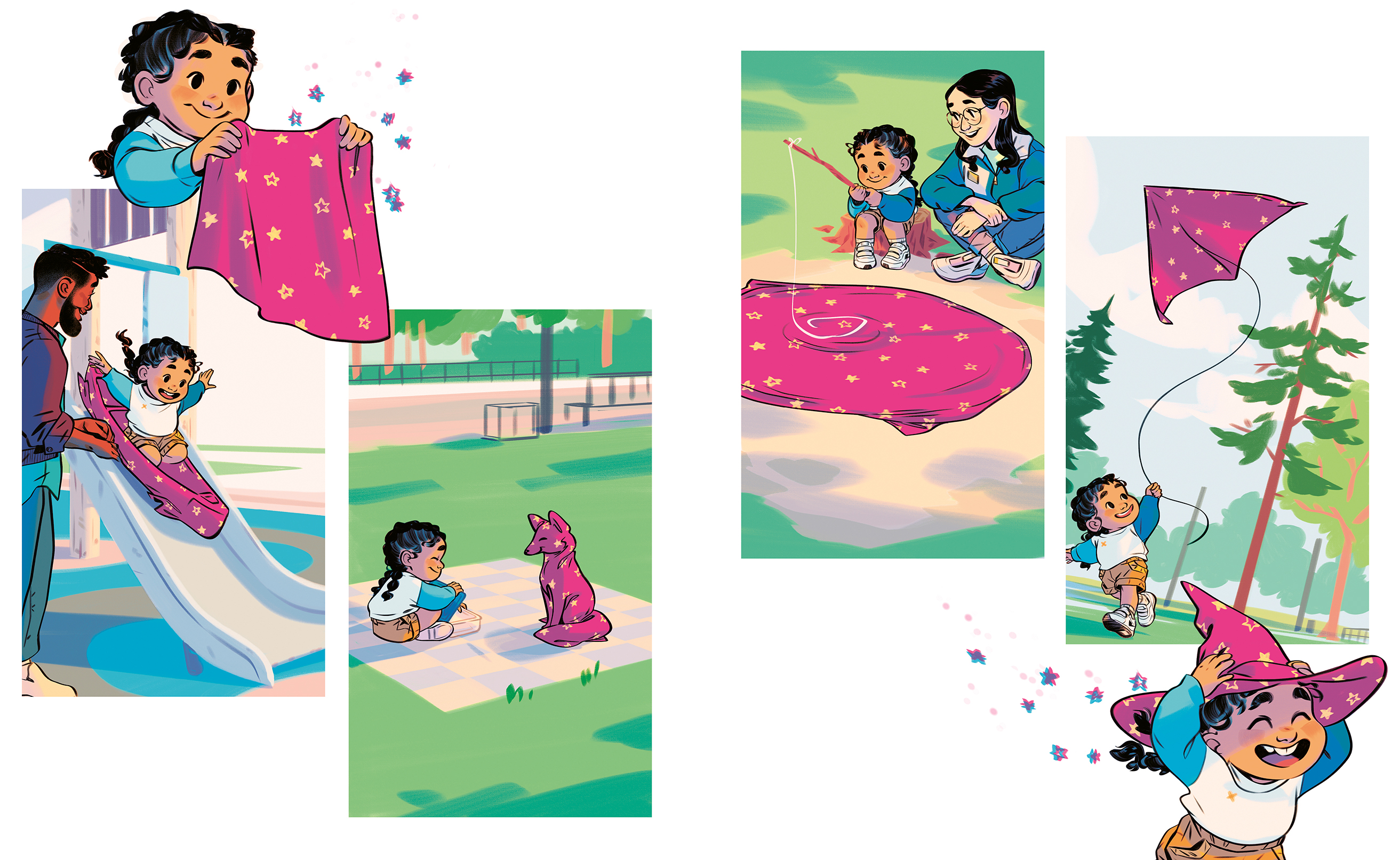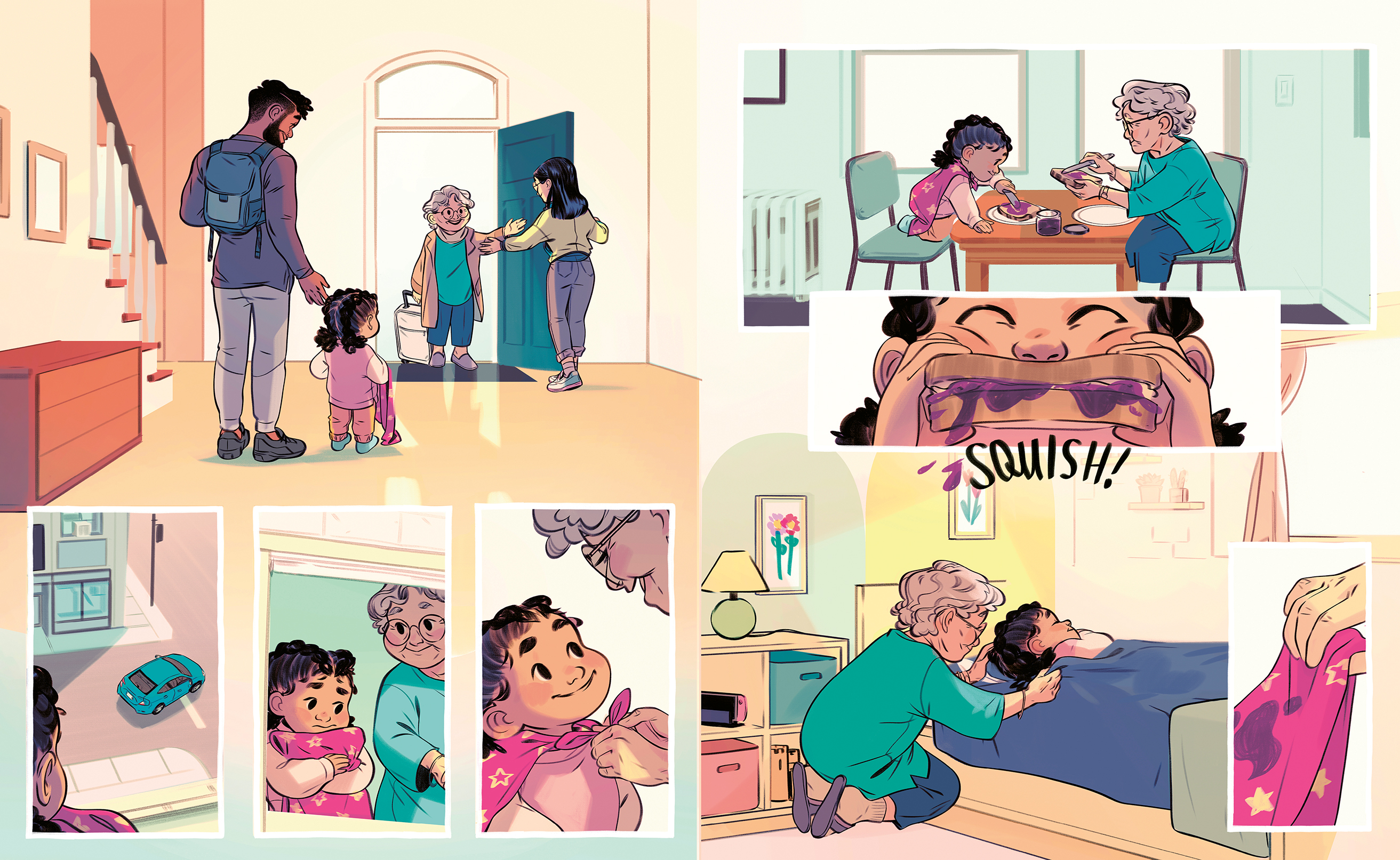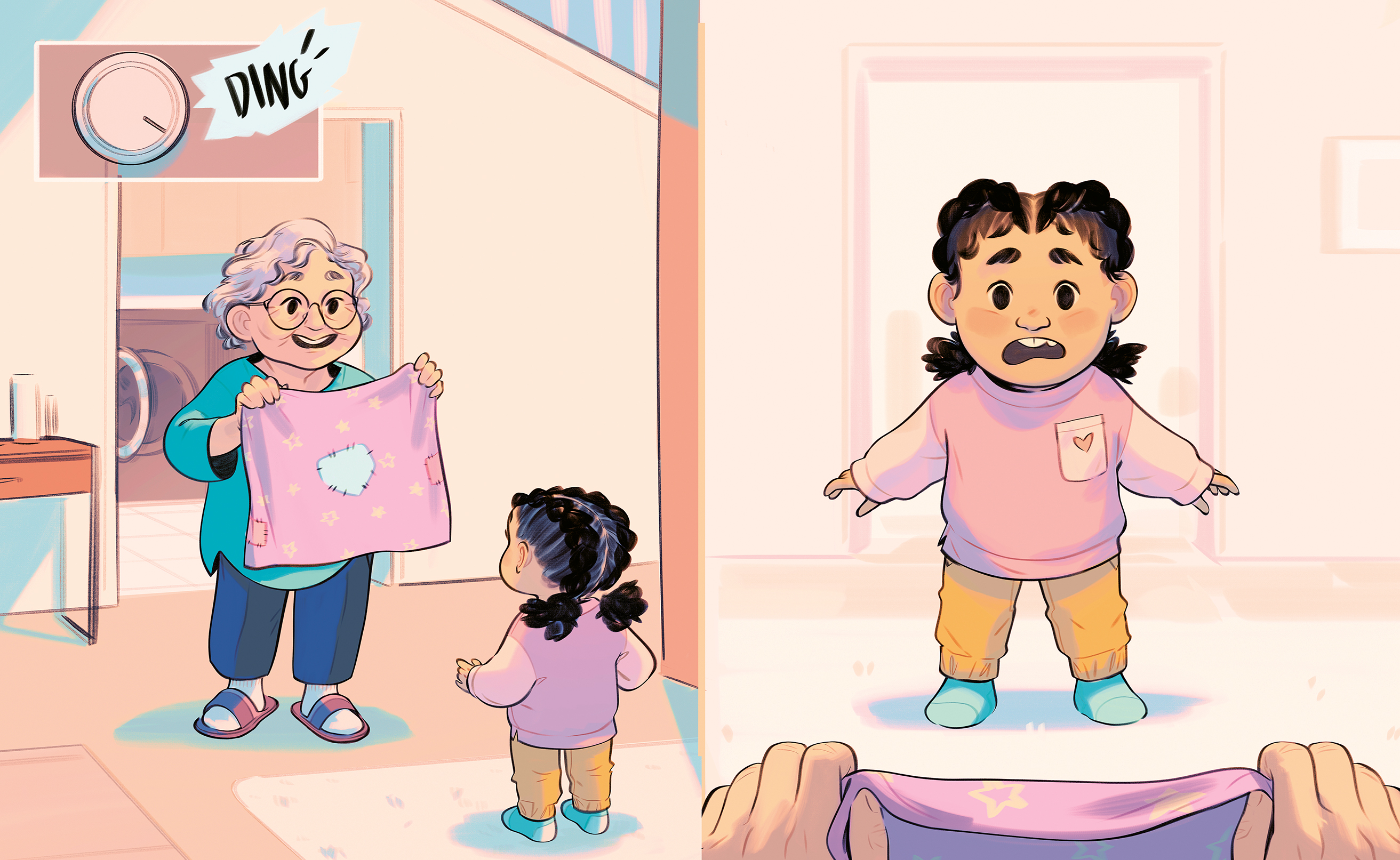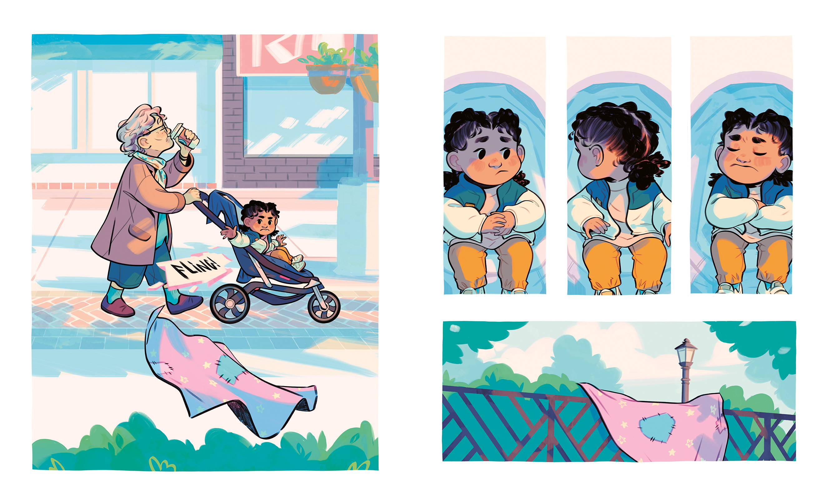 It can be anything she wants it to be, from a dinosaur to a canoe to a pond to fish in, and she brings it with her everywhere. But when Grandma comes to stay, she notices that the blanket is looking a little dirty and threadbare, so she gives it a good wash and patches it up. When Josie sees her blanket again, it doesn't look the same at all. This shrunken and faded imposter blanket has to go, and Josie throws it away on a walk with Grandma. But the next day, Josie gets lost on a short errand, and in her panic, she isn't sure where to turn. Right when she needs it, she finds her blanket again, and it shows her the way home. Even though it might look different, it's the same old trusty blanket after all!