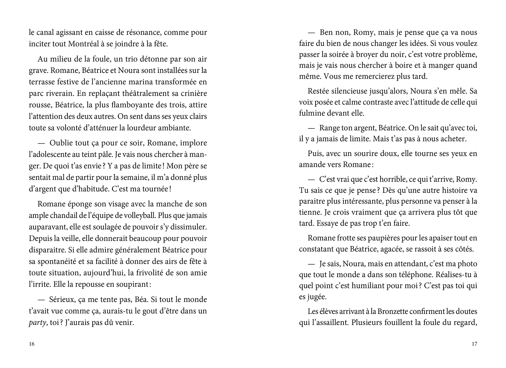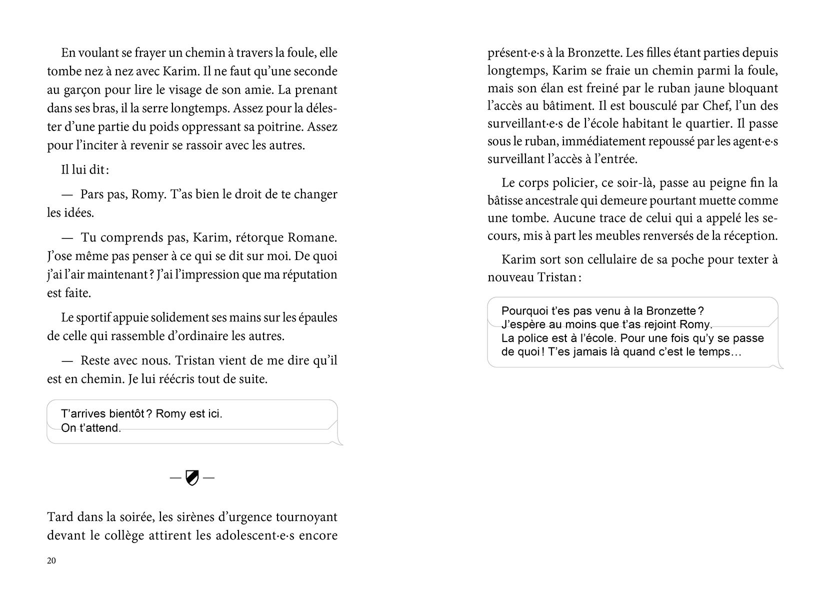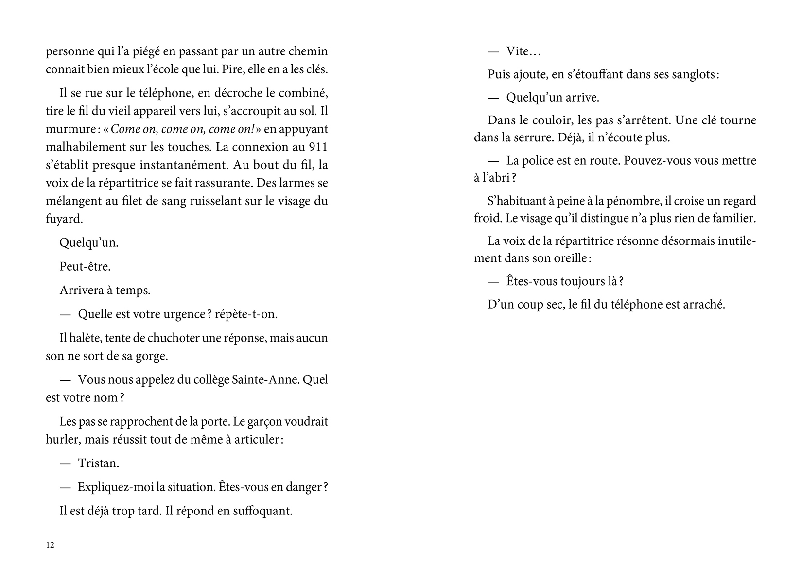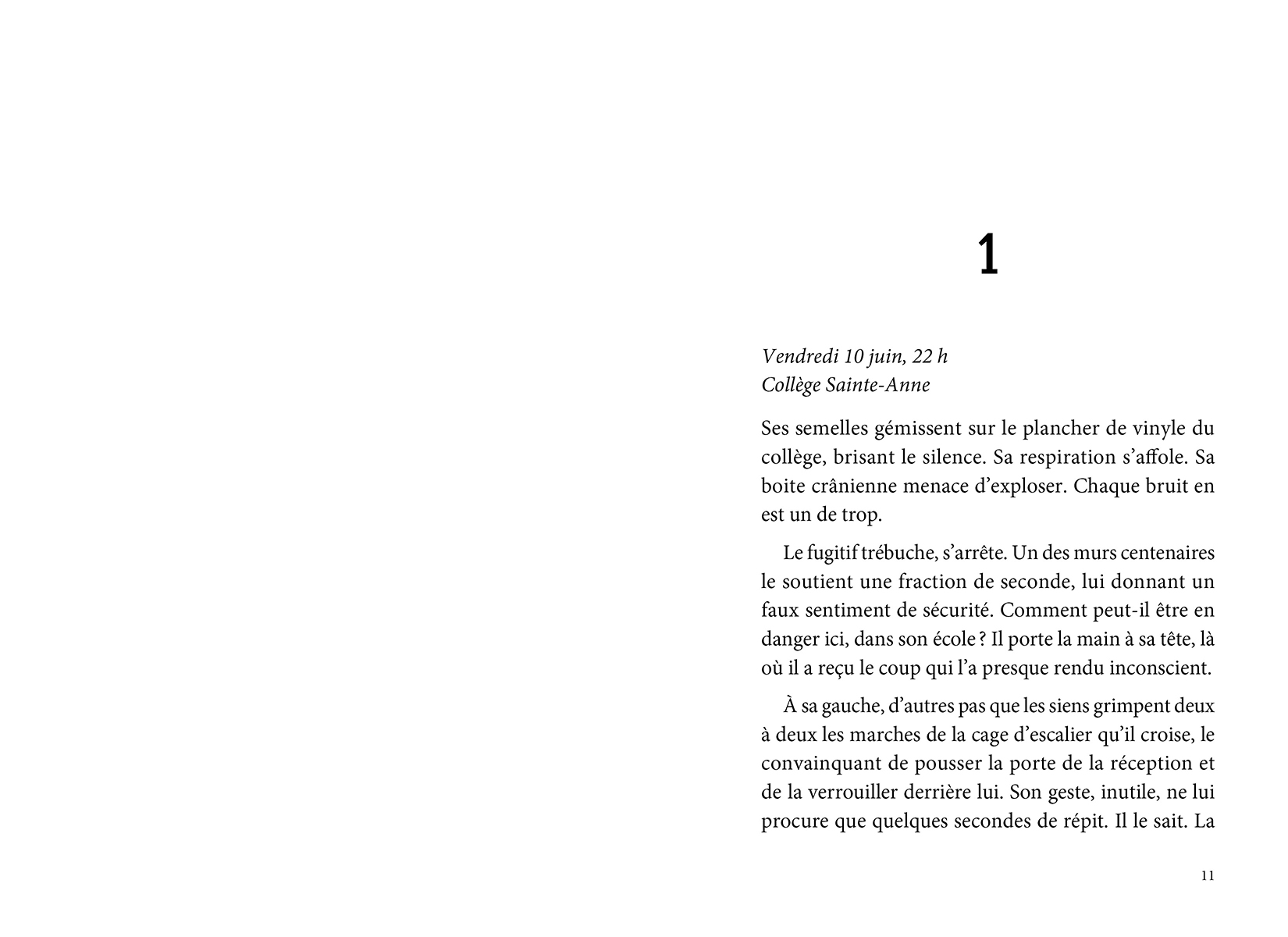 Un vendredi soir, un élève du Collège Sainte-Anne joint les services d’urgence. L’appel provient de l’intérieur des murs du collège. Très rapidement, on réalise que l’amoureux de Romane est disparu. Pourquoi lui plutôt qu’un autre? Nadine Sayah, enquêteuse, s’enfonce alors au cœur d’une histoire aux racines profondes. En effet, un drame est survenu au même endroit 50 ans plus tôt... Tandis que Romane est rongée par les remords, plusieurs vies se trouvent menacées.