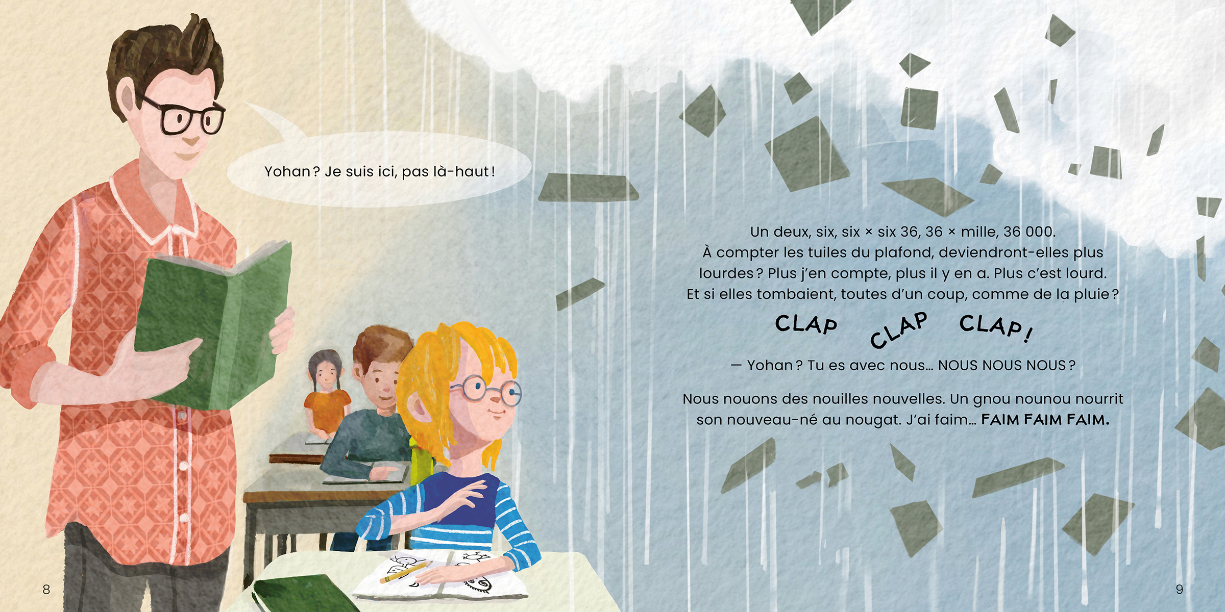 La tête de Yohan est souvent dans les nuages. La seule chose qui le ramène sur terre? Dessiner de petits personnages qui ont toujours su naître sous ses doigts. L’école, c’est parfois un endroit qui va trop vite, mais il a son talent pour s’y ancrer.