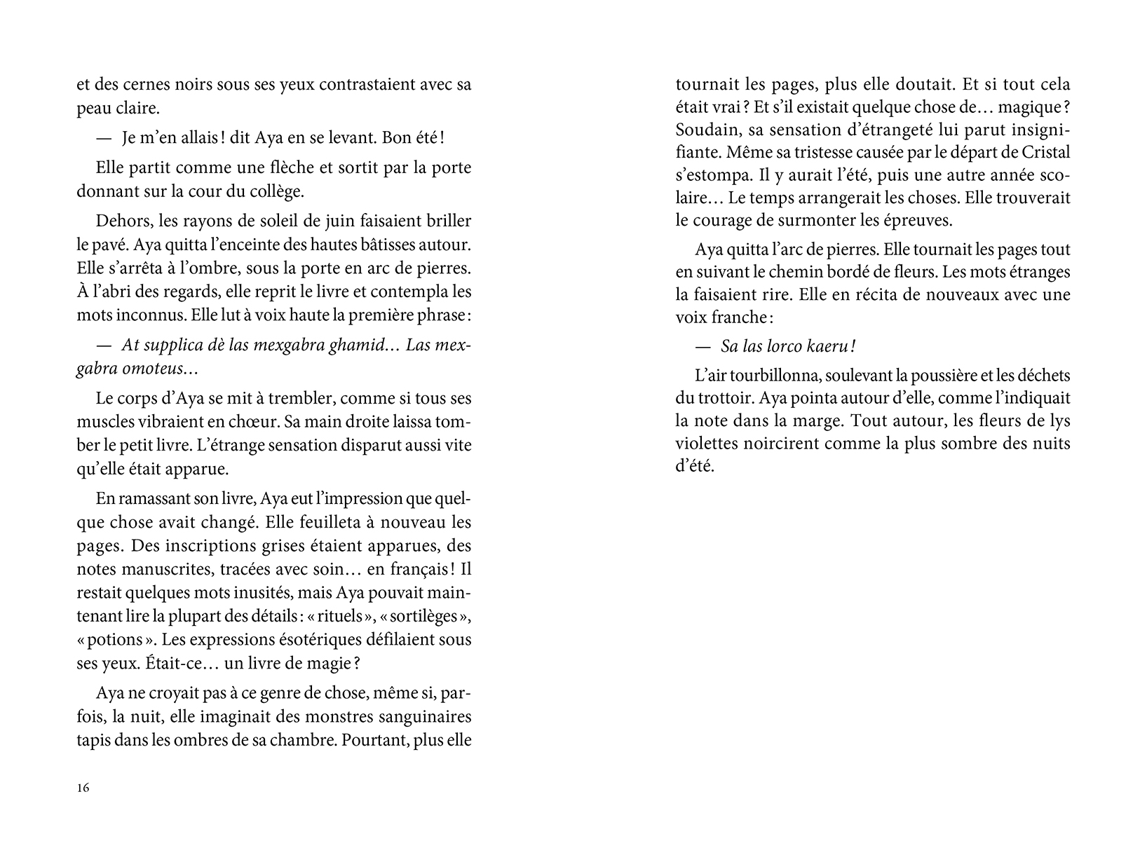 De retour au collège Sainte-Hubertine pour leur troisième année du secondaire, les orphelins de casier localisent enfin le portail menant au monde obscur. Mais en plus de chercher comment le fermer, Emerson, Jordan, Alexie, Véronika, Willem et Romy doivent repousser de nouvelles créatures qui s’introduisent dans l’école… Alors qu’ils tentent de maîtriser l’art des potions et de retrouver des livres disparus, un groupe d’élèves fragilise la solidarité des voisins de casier. Derrière la mission protectrice de cette « brigade » se trame quelque chose de plus sombre : une vengeance aux airs de sorcellerie. Dans ce troisième tome rempli d’émotions et de découvertes captivantes, ce ne sont plus seulement les créatures du monde obscur qu’il faut craindre…
