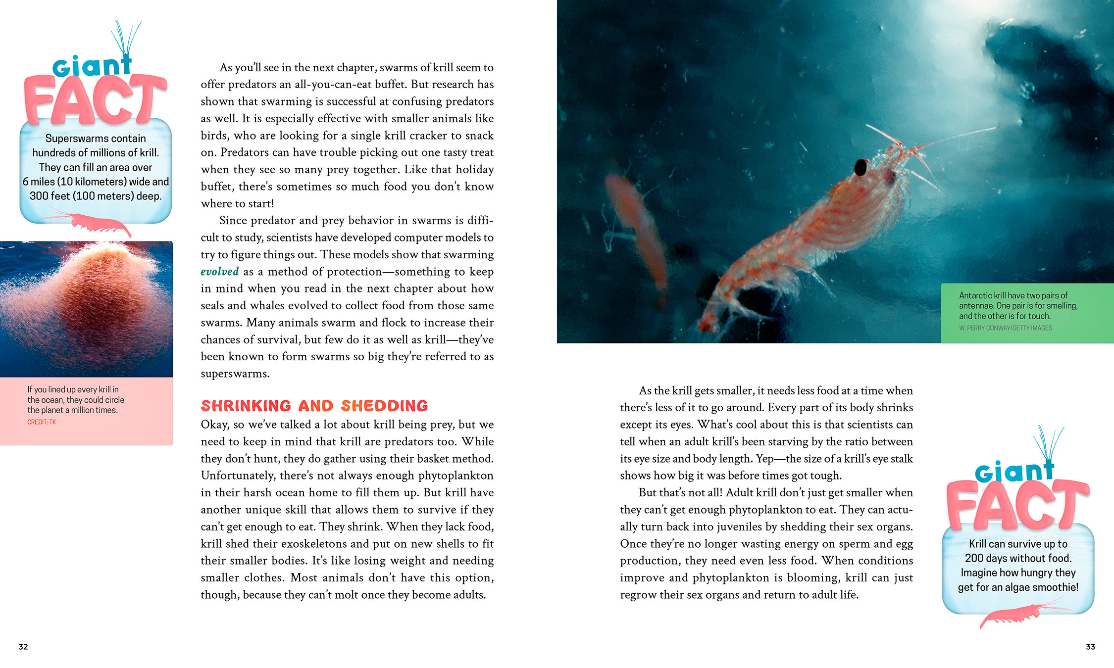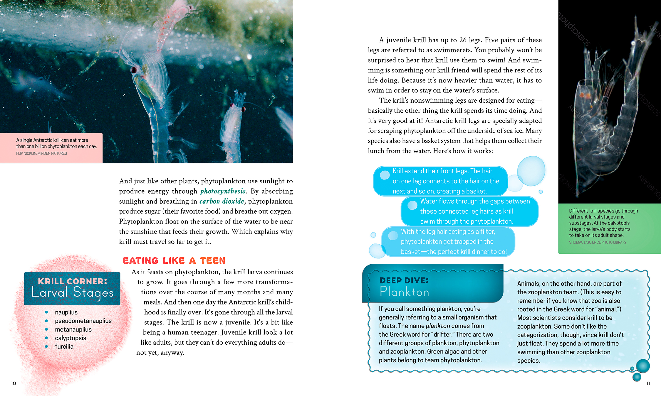 In Krill, readers will dive deep into the biology and behavior of krill, from their intricate swarming patterns to their astounding bioluminescence. Readers will learn about the marine food web that connects krill to so many living things and why it is so important to safeguard our oceans for the future. It’s time to protect these tiny ocean giants—and the environment they swim in.
