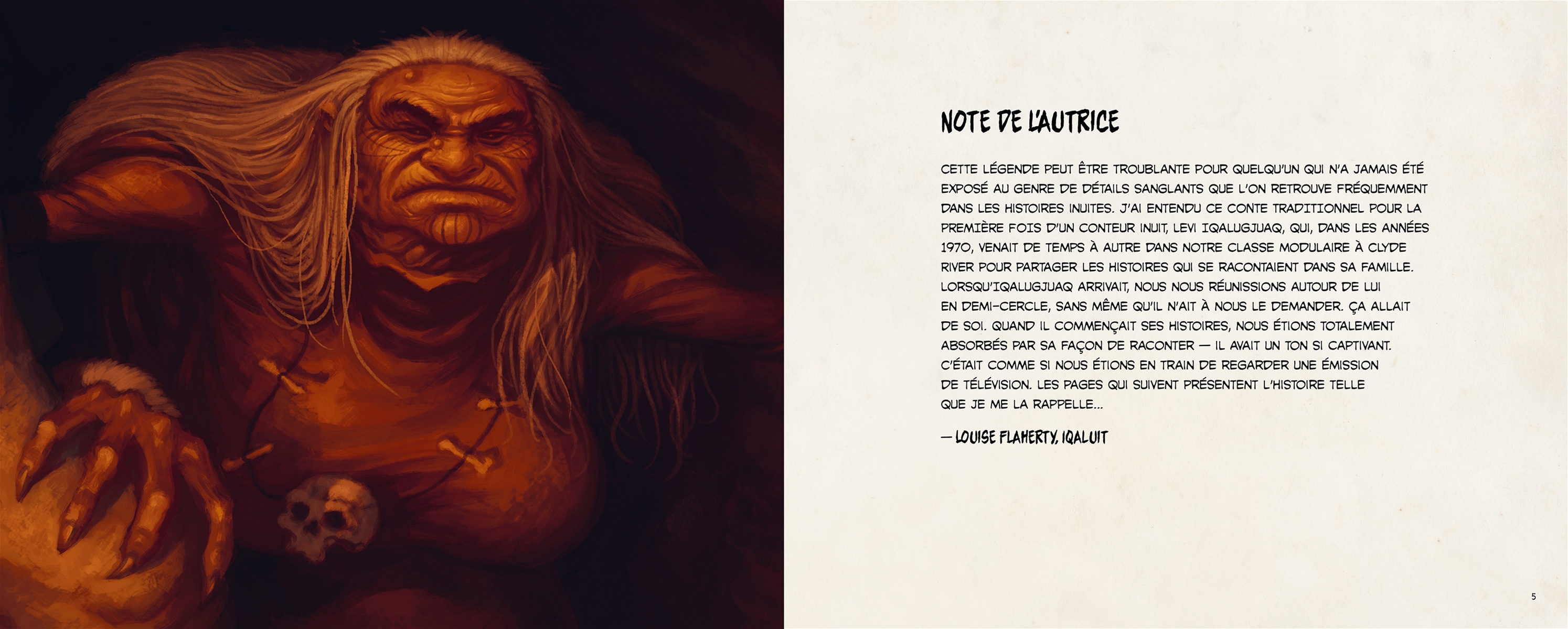 Deux jeunes femmes s’aventurent dans la toundra, loin du campement, jusqu’à se retrouver piégées dans la grotte de Mangittatuarjuk qui se régale fréquemment d’enfants égarés… Grotte lugubre, ossements humains, atmosphère magique sont les ingrédients parfaits pour faire de ce monstre inuit un personnage marquant du folklore nordique.