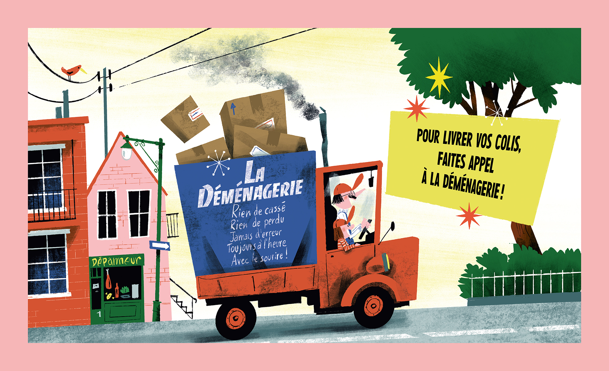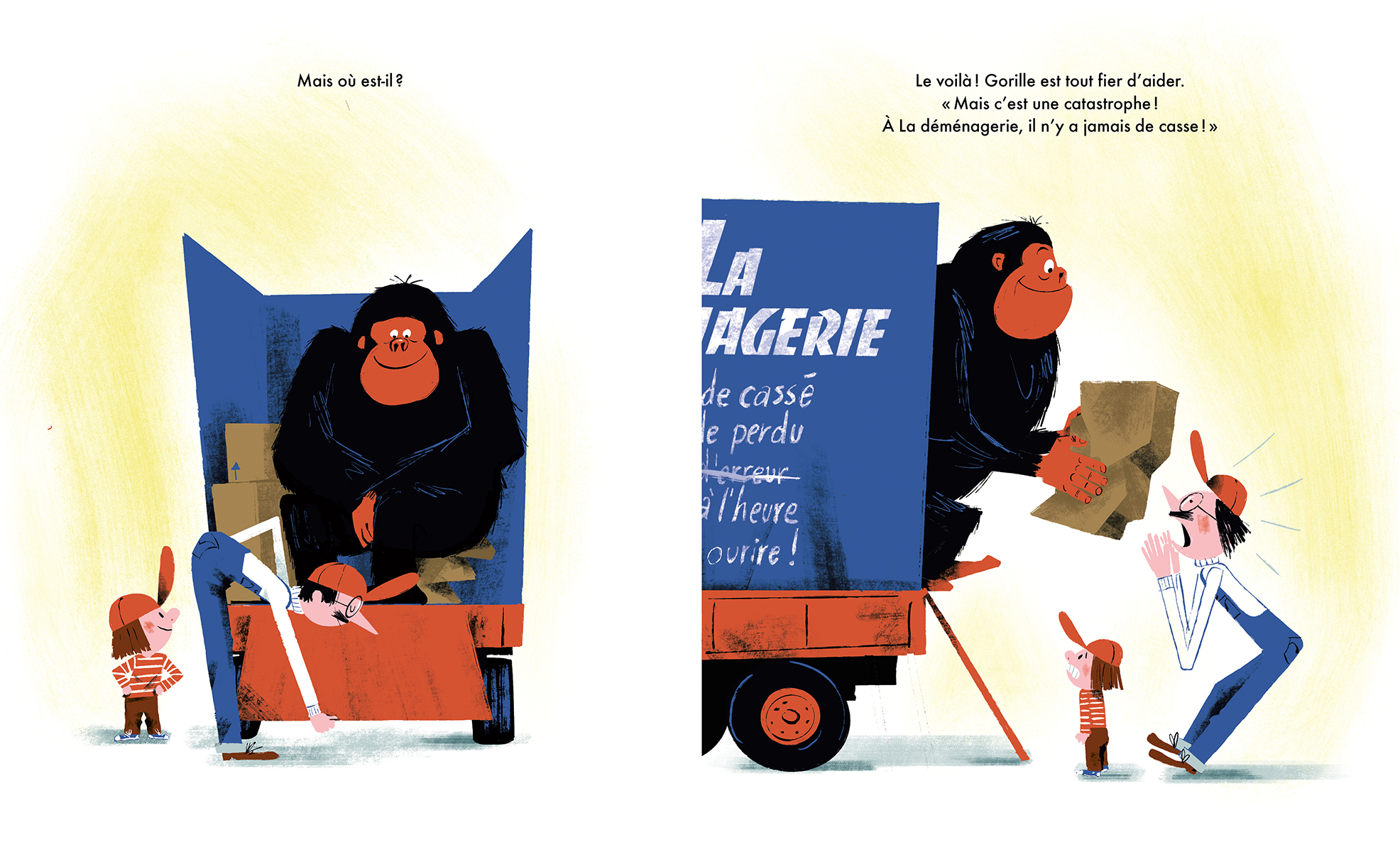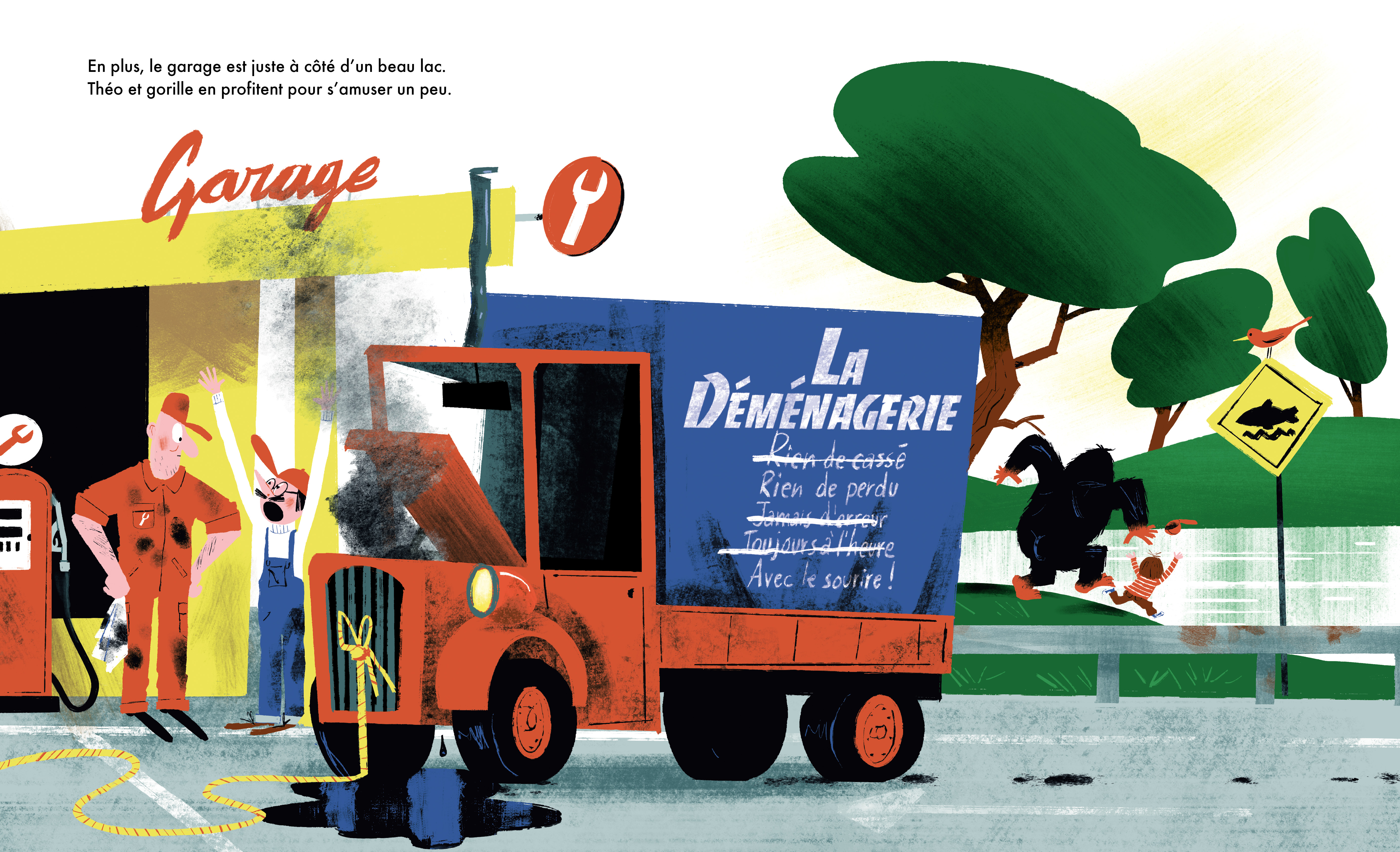 Comme chaque jour, Théo et son oncle Charles se préparent à embarquer à bord de La Déménagerie, leur camion de livraison de colis. À La Déménagerie on livre tous les paquets, coûte que coûte, et avec le sourire ! Leur mission du jour : quatre boîtes à livrer, dont une sur-dimensionnée ! En chemin, un gorille surgit d’une des boîtes et retire les étiquettes sur les trois autres. Catastrophe ! Comment notre duo s’en sortira-t-il pour livrer tous les colis et maintenir leur service impeccable ?