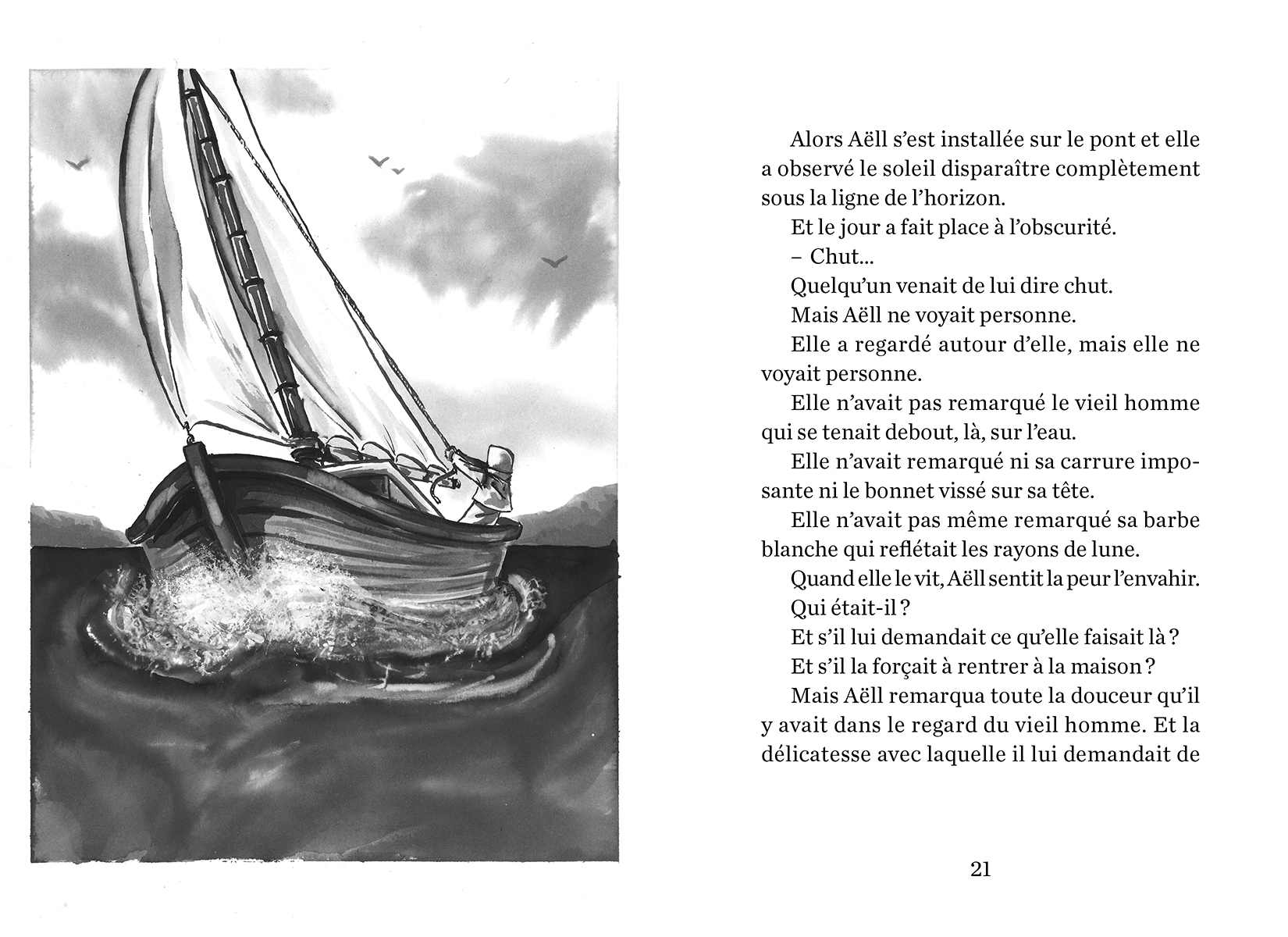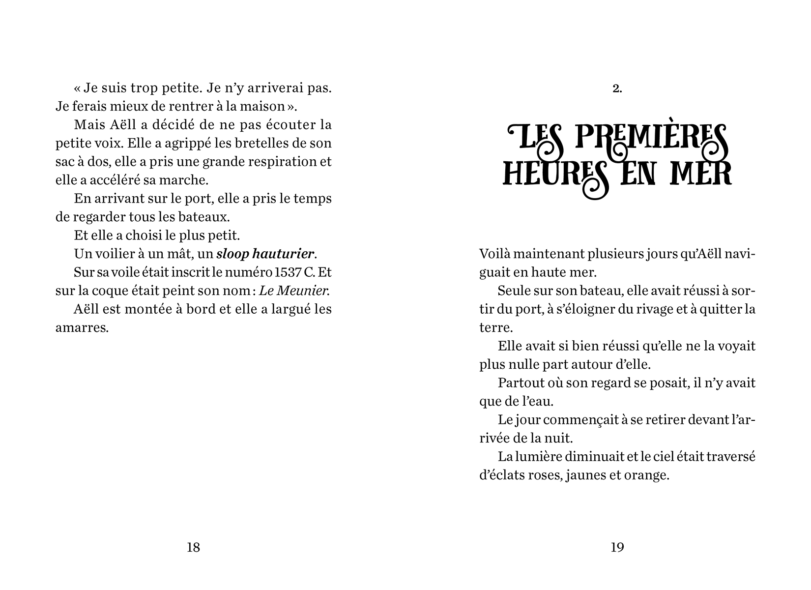 Je vais te raconter l’histoire de la si discrète et si petite Aëll. Prépare ton paquetage et embarque avec elle pour un voyage au-delà de l’horizon. Aëll était si petite et si fragile, qu’on ne la remarquait pas. Afin d’échapper à la dureté de sa famille et de son village, elle va embarquer sur un petit voilier, un sloup portant le nom de “Le Meunier”. Elle va prendre la mer sans se retourner et affronter les affres de l’océan et de la solitude, enfin presque…
