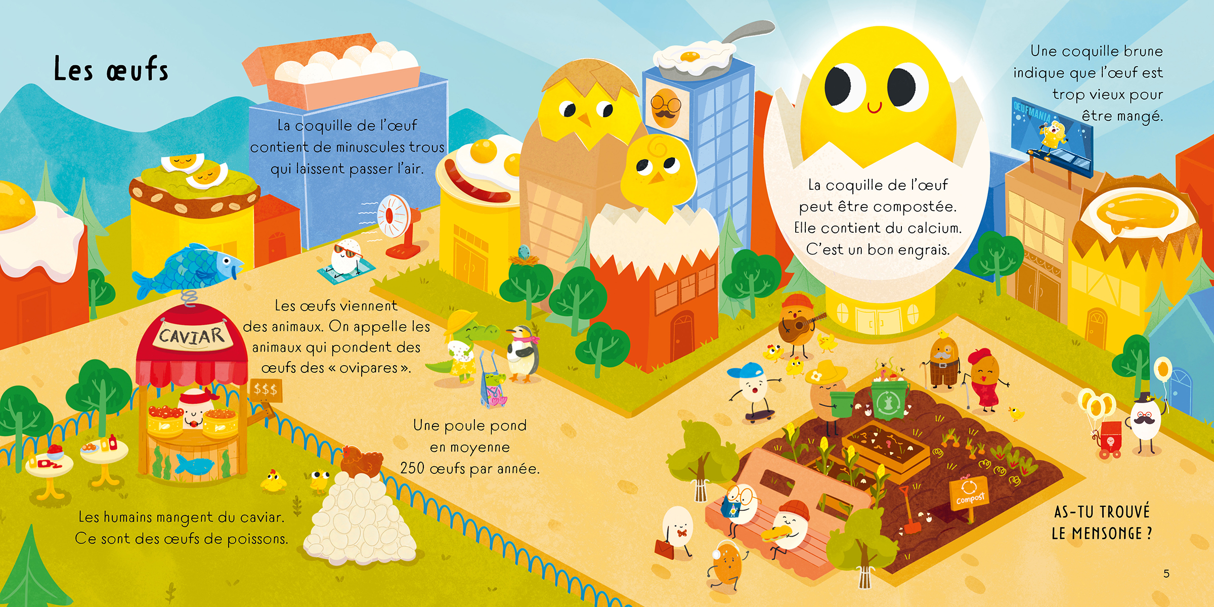 Sauras-tu trouver le mensonge? Est-ce que les poules pondent en moyenne 250 œufs par année? Est-ce que la croûte du fromage est toxique? Est-ce que les abeilles sont les seules à fabriquer du miel? Apprends à propos de sept aliments de base et imagine aussi quelques mensonges fous!