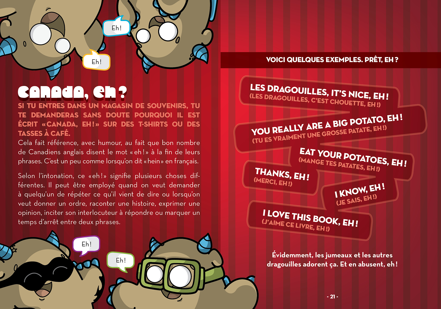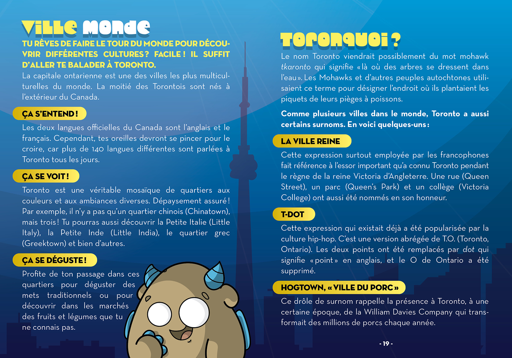 Guidés par les dragouilles, des petites patates-dragons hilarantes et espiègles, les lecteurs visiteront Toronto, au Canada. Les jeunes exploreront le St. Laurence Market et goûteront au célèbre peameal bacon. Ils sauteront sur la glace du Temple de la renommée du hockey et visiteront les plages de Toronto.