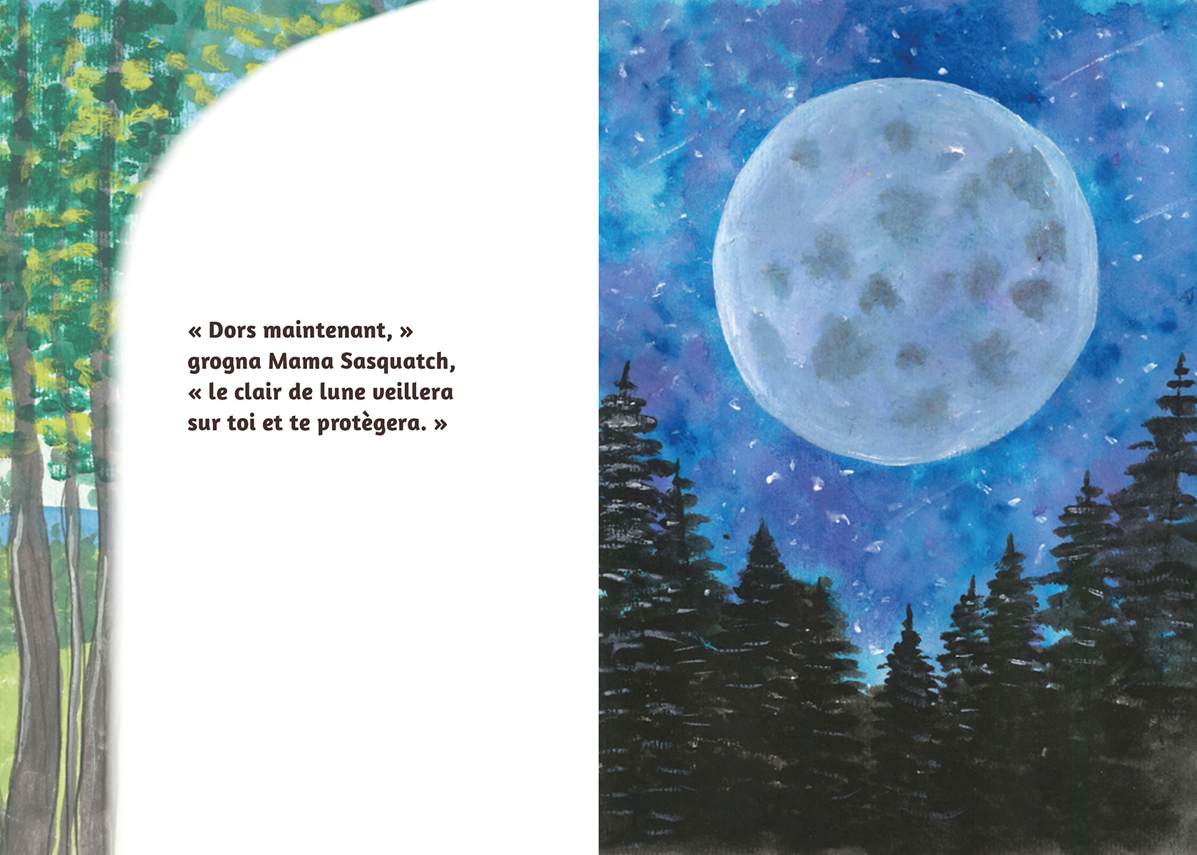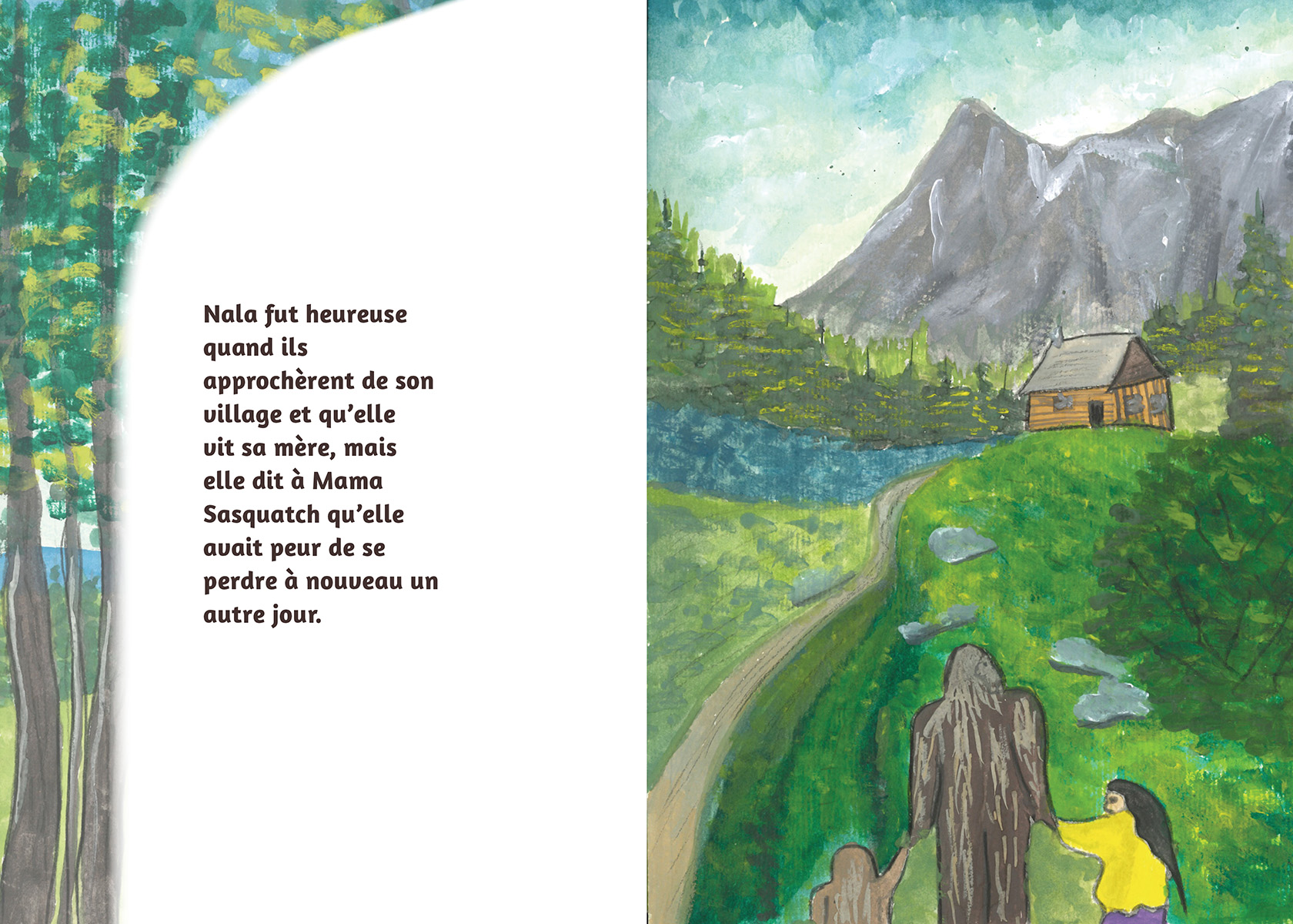 A la recherche de buissons de baies, Nala se perd, seule dans la forêt ! Heureusement, Mama Sasquatch entend ses cris et veille sur elle toute la nuit. Le lendemain, Nala apprend comment et pourquoi Mama et Bébé Sasquatch vivent dans la forêt, loin des gens. Une histoire à la fois charmante et apaisante pour les jeunes enfants, Mama Sasquatch présente des illustrations peintes envoutantes de l’artiste et autrice Eva Swift, de la nation Ditidaht.