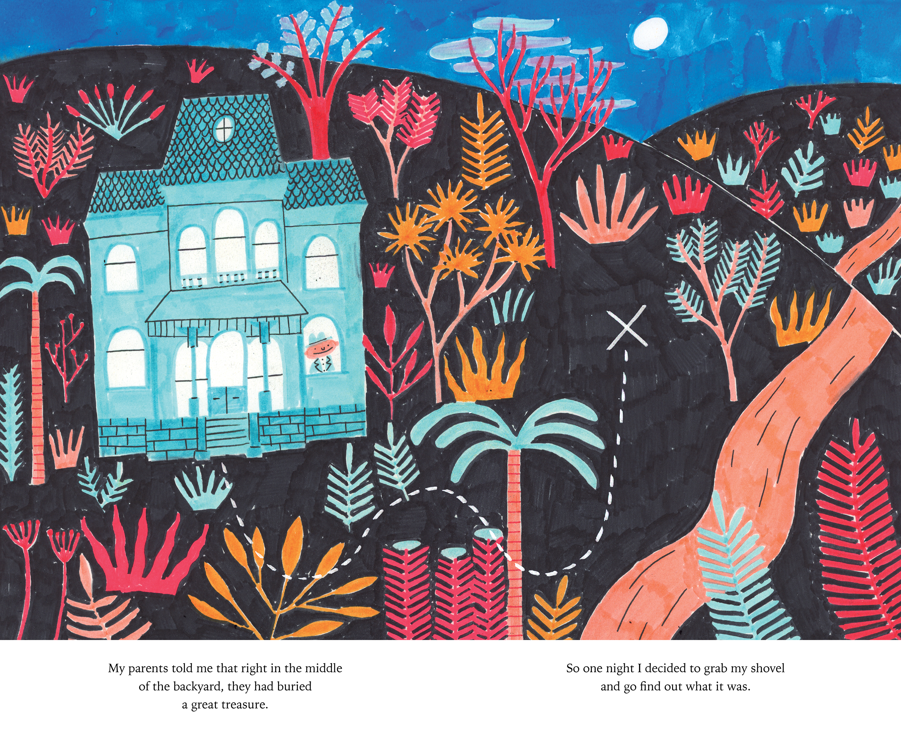 When a boy’s parents tell him they buried a great treasure in the backyard, he decides to dig it up.