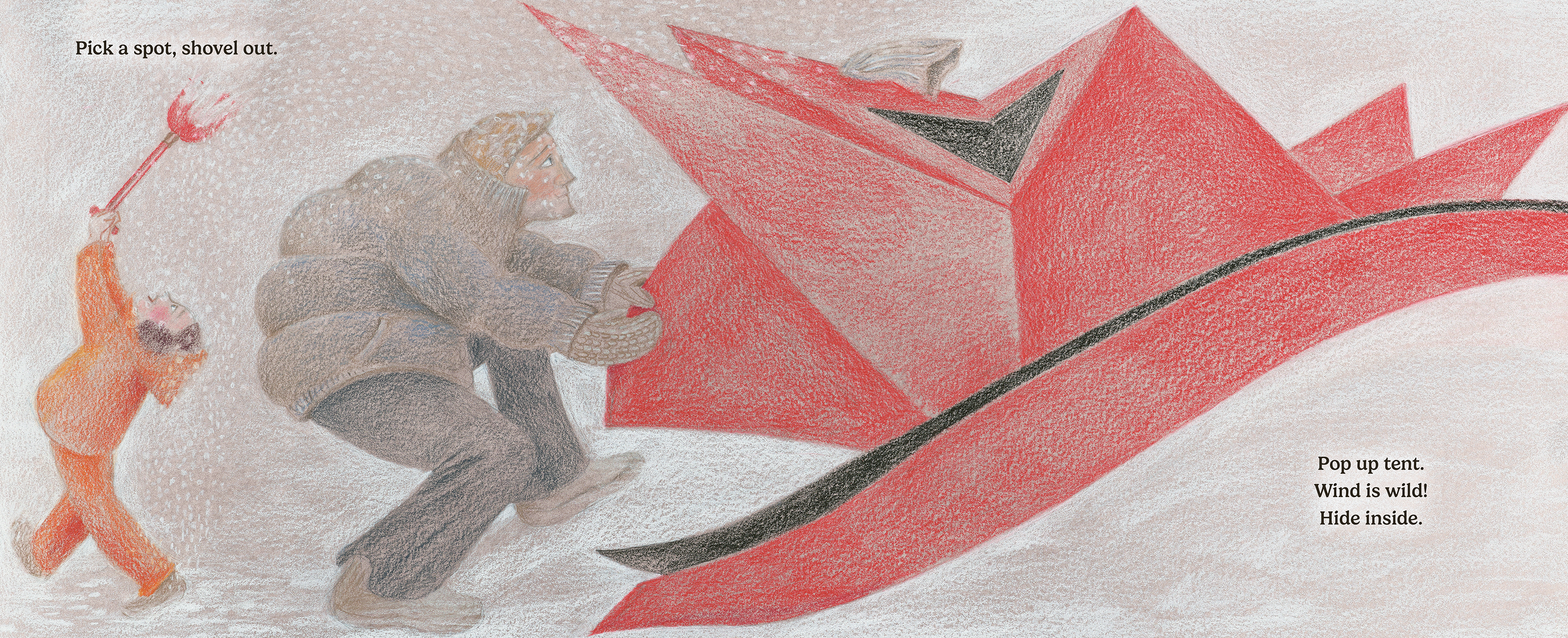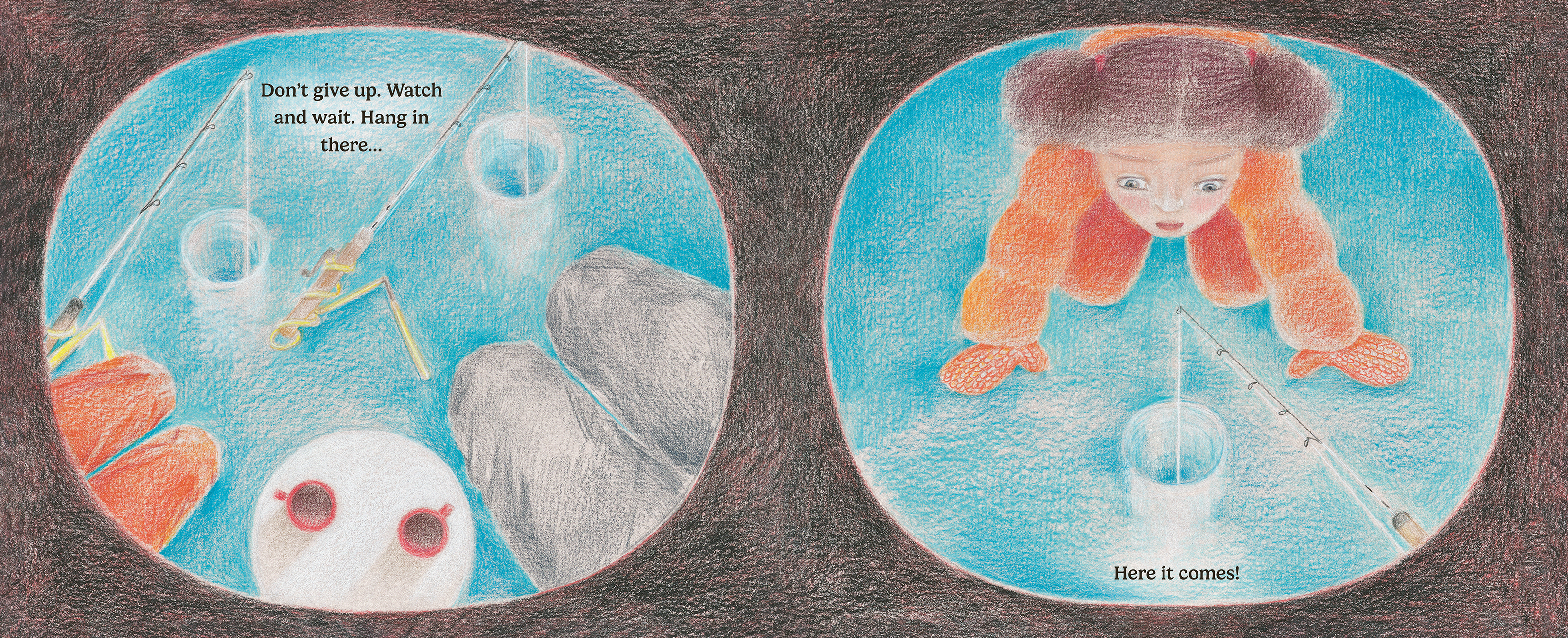 The wind is wild on the frozen lake, but luckily they are bundled up inside their cozy tent with plenty of hot chocolate. After waiting...and waiting...and never giving up...is that a tug on the line? Their patience pays off when they reel, reel, reel in some spotty trout. The best part of the day? Sharing their catch with family for a delicious dinner!