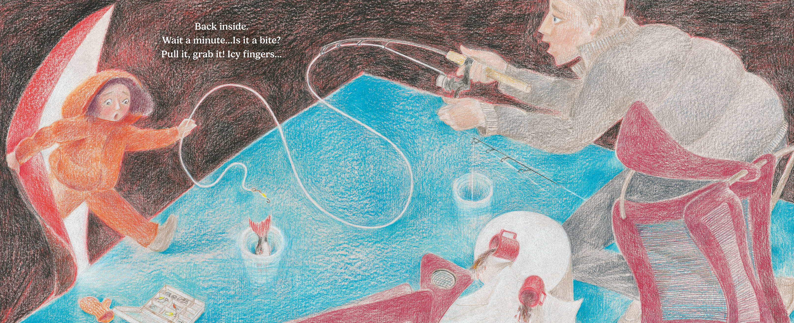 In this striking picture book, dad and daughter wake up early to get ready and head out ice fishing while the rest of the family sleeps.