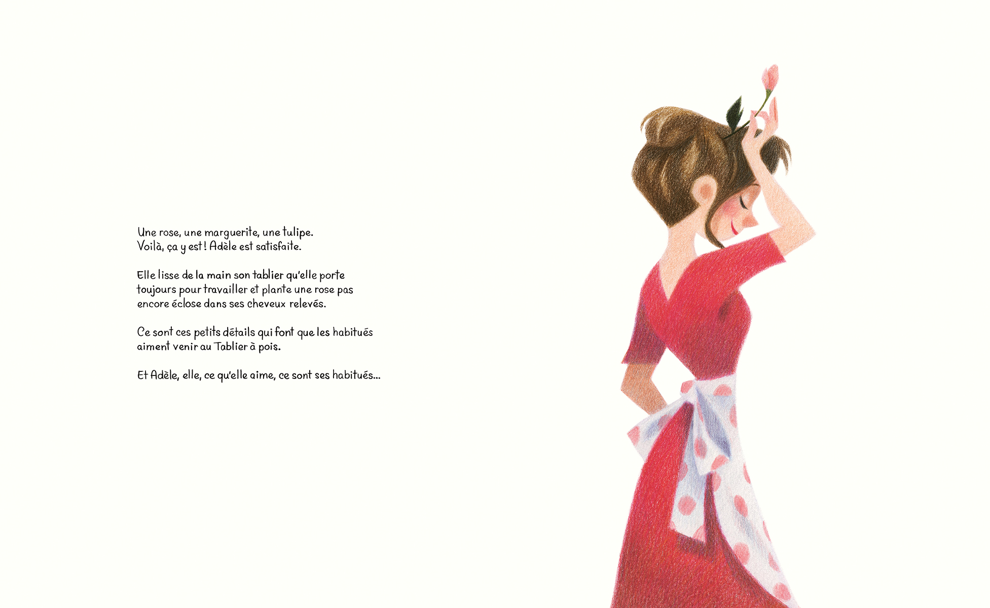 « [...] Cet album pour enfants, mais aussi pour les grands enfants, est incroyablement charmant, lumineux et donne envie de chanter et d’être amoureux, même les jours de pluie. Le trait de crayon de Geneviève Godbout est magnifique et elle insuffle à Adèle une personnalité des plus vivante et colorée. J’ai un coup de coeur aussi pour le format de l’album, ça fait plaisir de voir un si bel objet et La Pastèque a réellement un plaisir et un amour pour les livres en offrant toujours des livres de qualité, et toujours si beaux. Le plaisir de tenir le gros album dans nos mains contribue au charme de l’histoire et agrémente le beau texte délicat d’Amélie Callot. Rose à petits pois est réellement un indispensable à lire confortablement dans un parc, verre de limonade à la main! Sourire et bonne humeur garantis! »