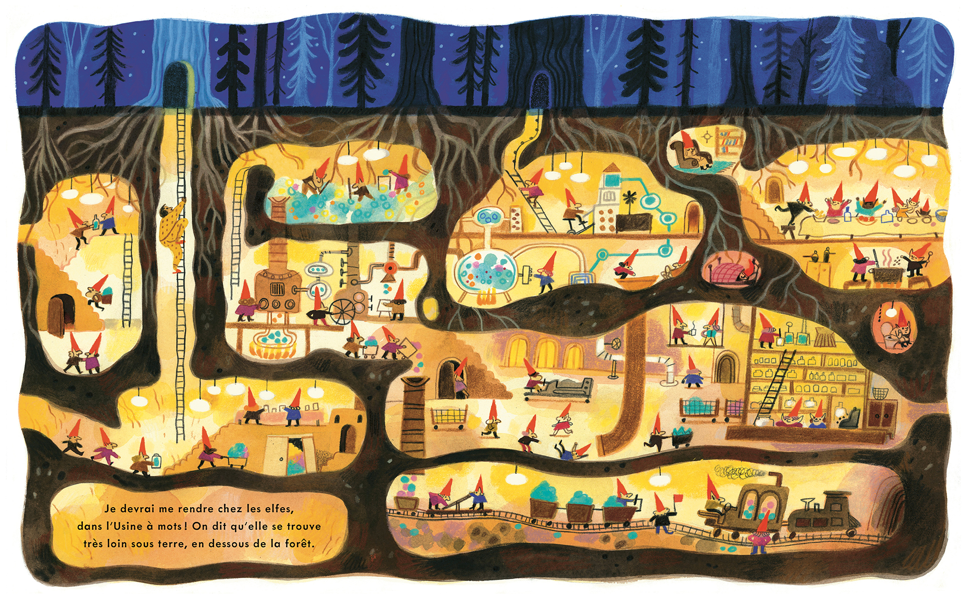 Une jeune fille, désirant l'attention de son père, lui pose une série de questions anxieuses et complexes. À chaque inquiétude, le père répond avec douceur et assurance : s'il se retrouvait à court de mots, il se rendrait à la Fabrique de Mots des Elfes pour s'assurer de ne jamais en manquer à nouveau, peu importe les défis à relever : traverser les bois les plus sombres, échapper aux pirates, ou même piloter une fusée pour rentrer chez eux. Rien ne pourrait jamais les séparer, et il n'y a pas assez de mots pour exprimer tout l'amour qu'il éprouve pour elle…