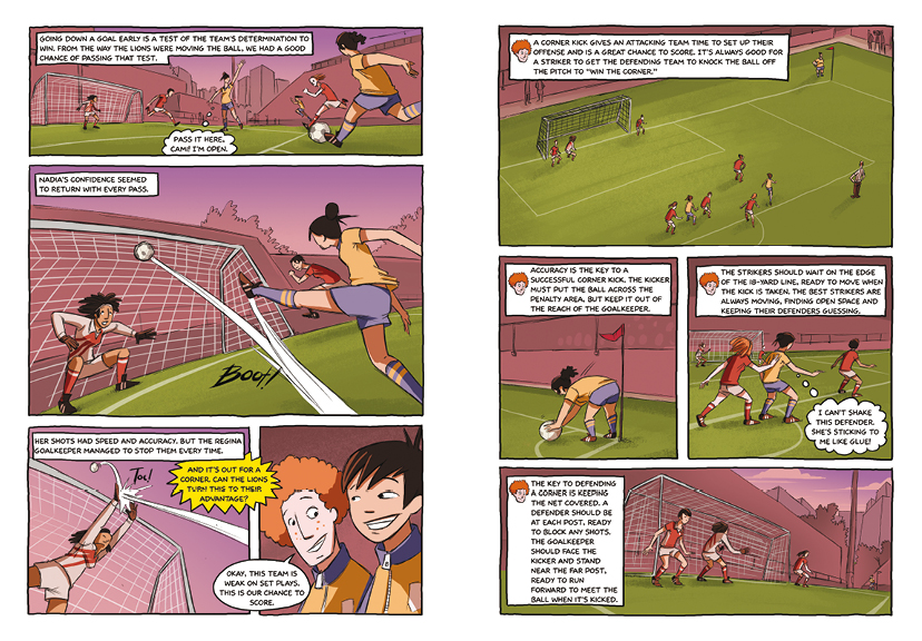 "Clever dialogue, and the full-color cartoons have a lot of action, particularly Nadia's hair-raising escape from the villain at the end. This entertaining story provides soccer instruction as well as mystery."