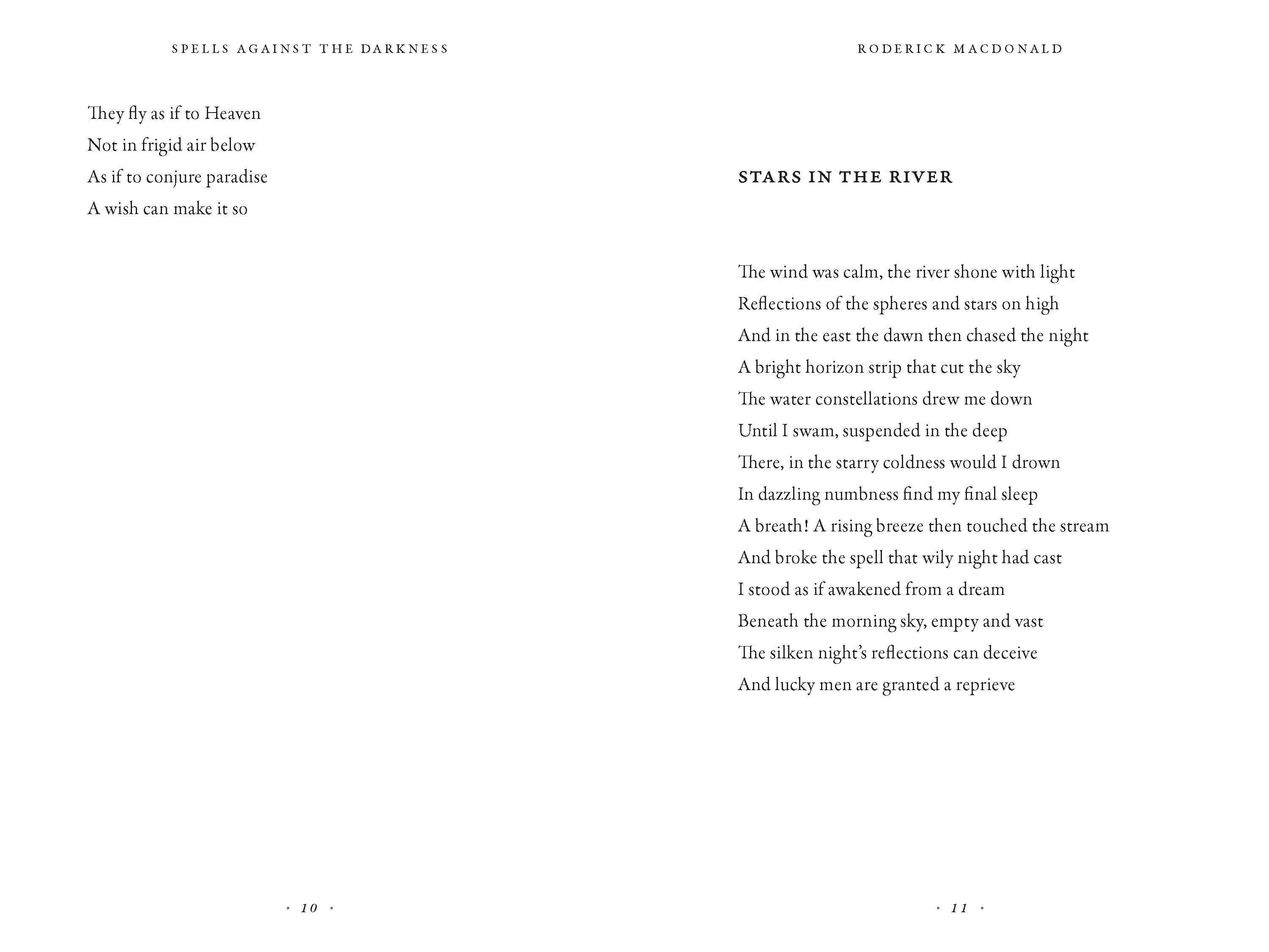Spells Against the Darkness is a compelling and enjoyable exploration of the intimate and universal. From the peace of a Prince Edward Island country lane, to the clamour of New York City, classic poet Rod MacDonald draws on a variety of lyrical styles to weave his stories into verse.
