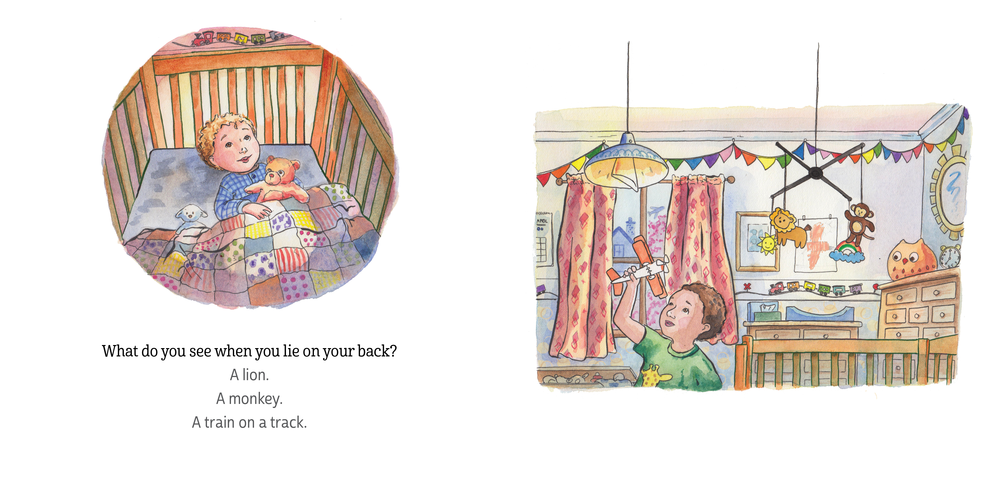 This beautifully illustrated board book celebrates the point of view of children who are too small to tell you what they see but not too small to experience the joy of small things such as a colorful mobile, a favorite teddy, an older brother's Lego castle or a trip to the park. Young readers will take pleasure in finding all the objects the baby sees, and adults will enjoy the depiction of how a child's world expands on almost a daily basis.